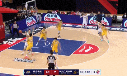 北京时间11月14日消息,在今天进行的CBA常规赛的比赛中,辽宁男篮对阵浙江广厦。图为赛场上精彩瞬间。