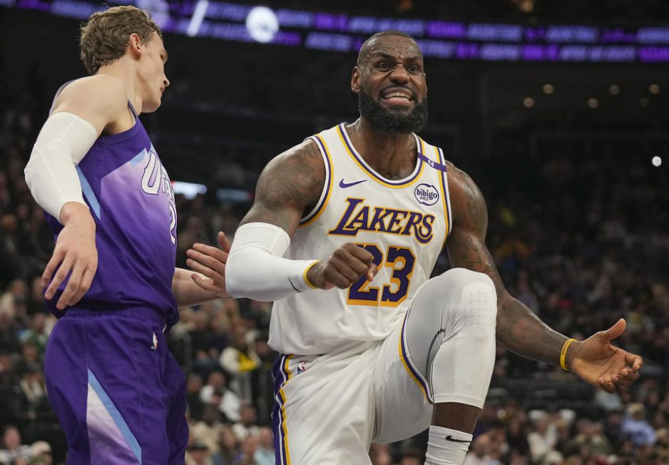 爵士随后再度追到差4分打停湖人,詹姆斯连续外线3次三分不中极为尴尬。爵士继续反扑追到仅差1分,詹姆斯终于不再迷恋投三分,还剩41秒,詹姆斯转身拉杆避开防守命中维持3分优势。爵士继续追到差1分,詹姆斯再次持球三分不中,塞克斯顿成功进球,但爵士请求暂停在先进球无效。最后2.1秒塞克斯顿突破,詹姆斯突然滑倒,所幸塞克斯顿还是被多人封堵无缘绝杀,最终帮助湖人险胜,但詹姆斯的外线手感何时能够调整好还是未知数。